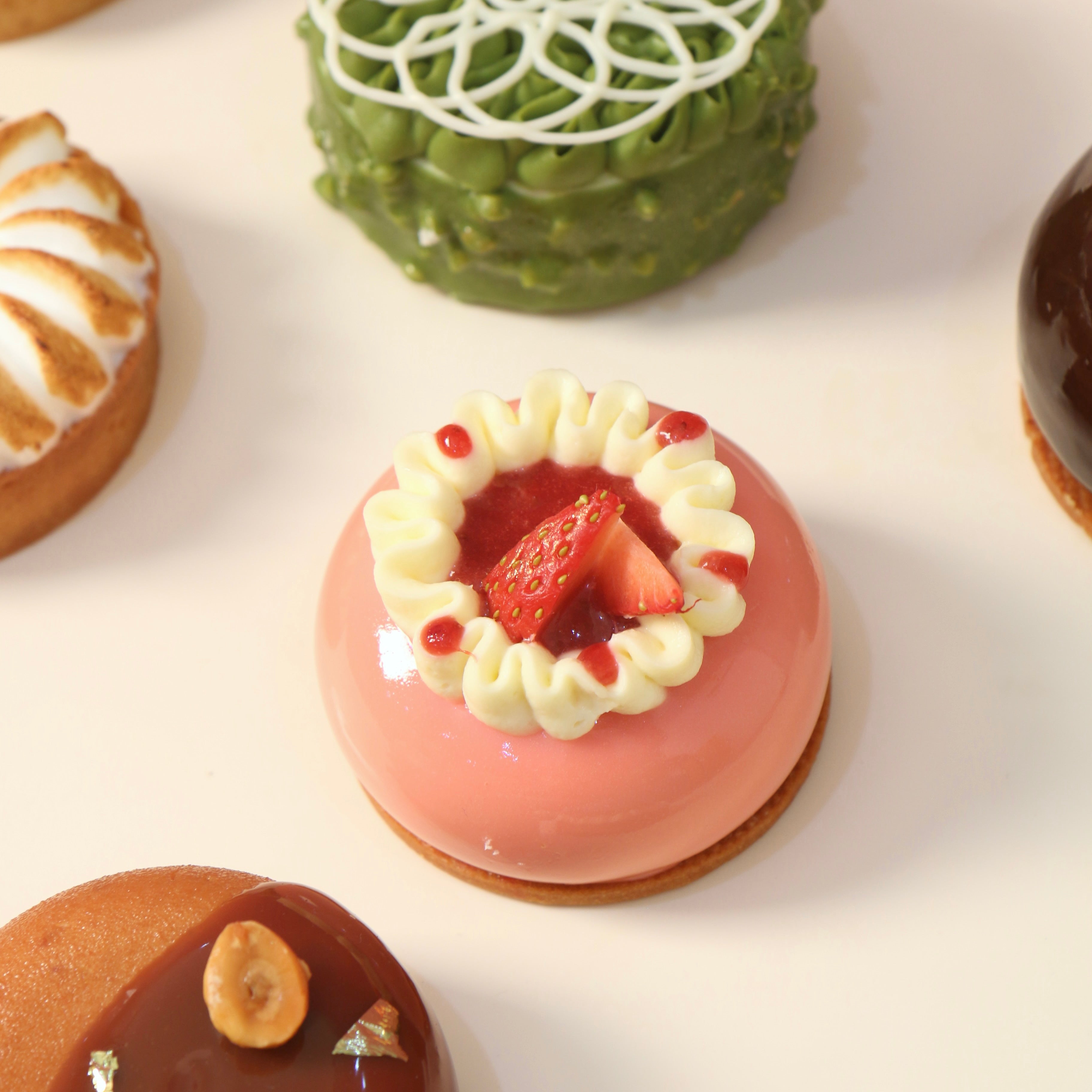 Strawberry mousse, earl grey tea whipped ganache, earl grey sponge cake, strawberry confit