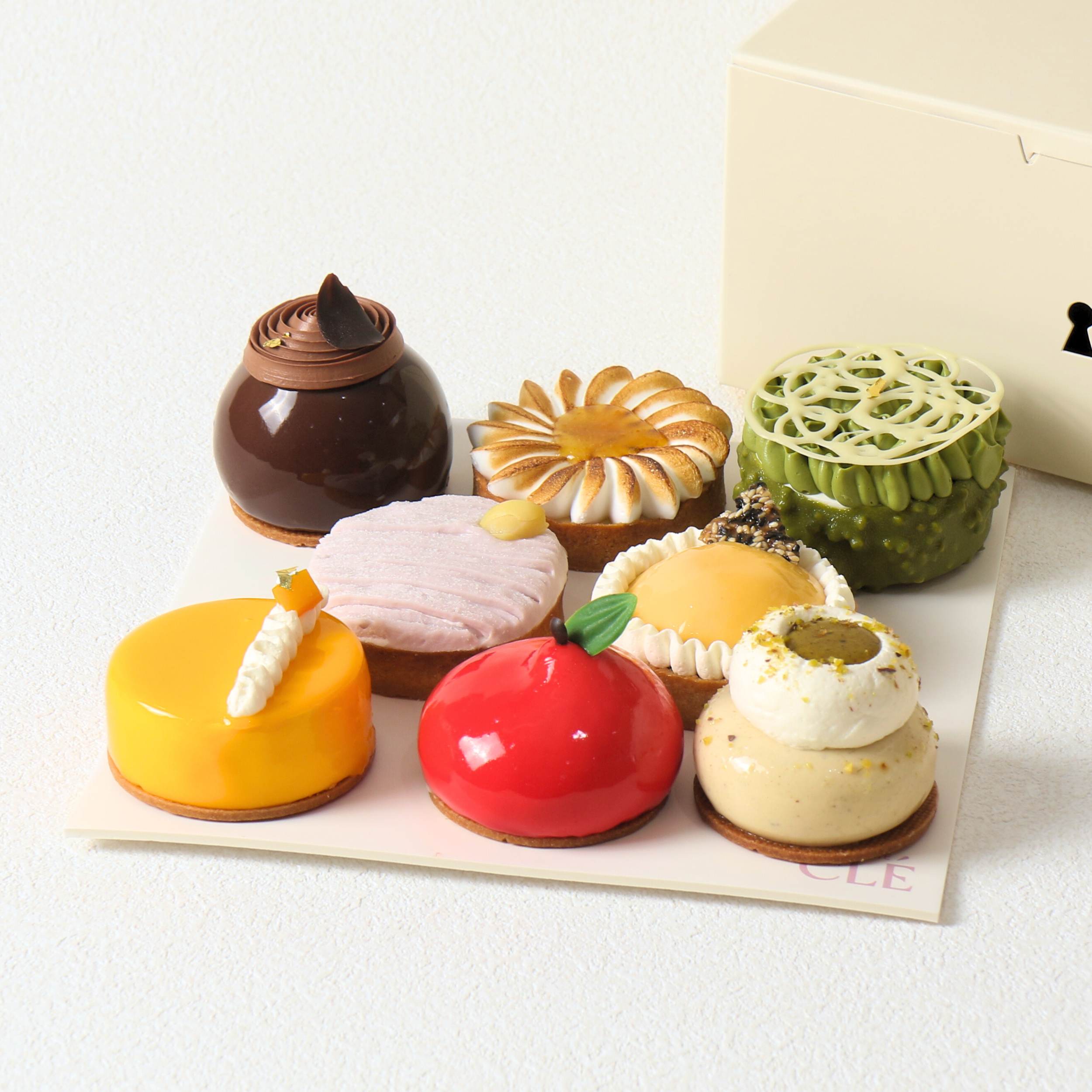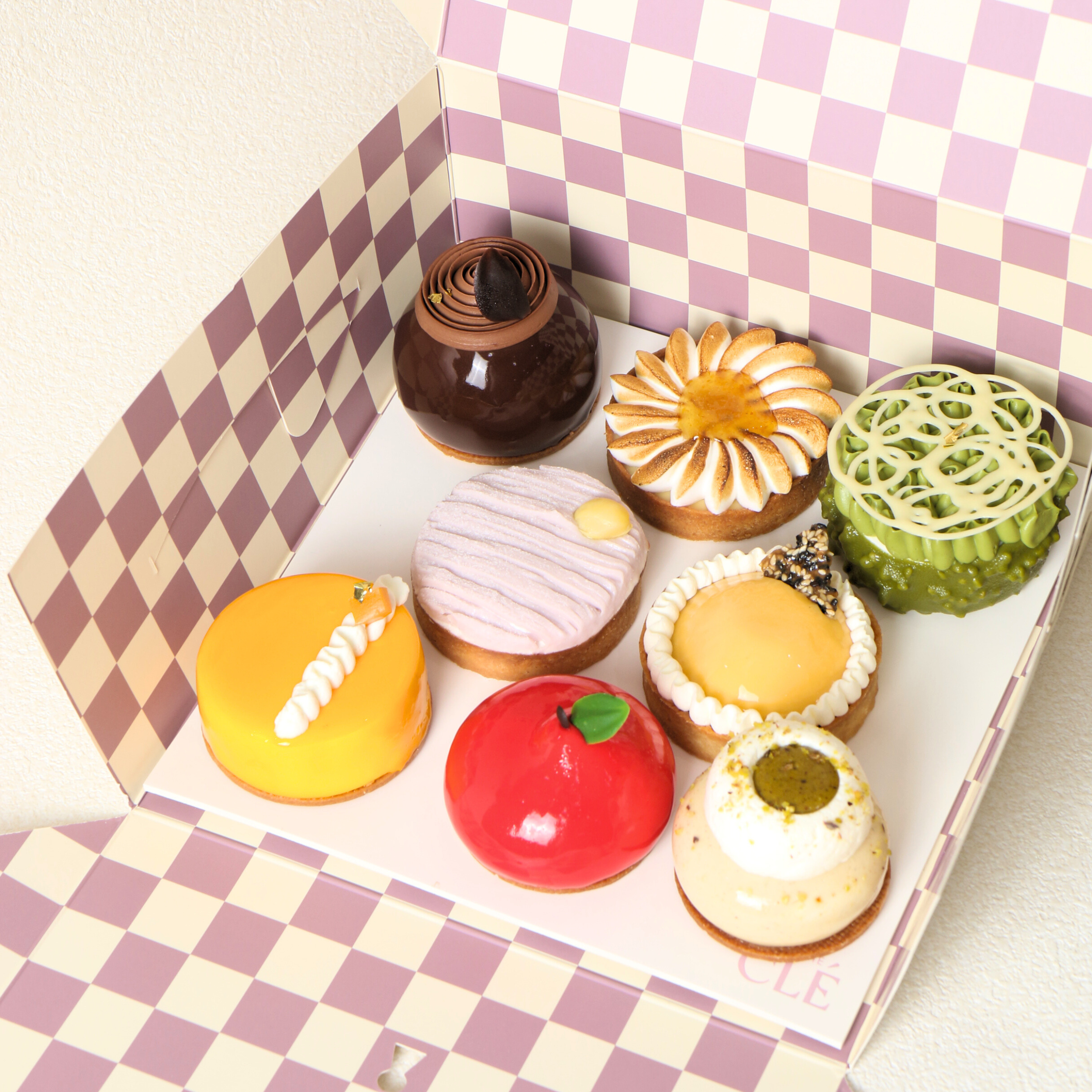 Uncover the key to unlocking your heart’s desires with Pâtisserie CLÉ. All of the sweet treats in our dessert boxes are baked fresh daily, using the best ingredients. Whether you are looking for French tarts with a unique spin or bakes with a minimalist yet savoury charm to them, Pâtisserie CLÉ has you covered with our extensive selection of dessert boxes in Singapore. Enjoy island-wide delivery at $15, or have that waived for orders above $100. Aside from our dessert boxes, we also offer other equally delectable cakes and croissants. Alternatively, get the best of everything with our dessert platters that are ideal for any occasion. Add your favourite dessert boxes to your cart today and leave the rest to us!